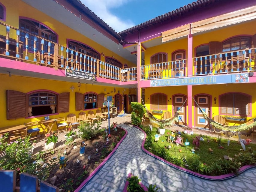 Located 1 block from Abraão Beach, Pedacinho de Céu is on the scenic Ilha Grande Island. It offers free WiFi and features colourful exteriors nestled against flowers and tropical plants.