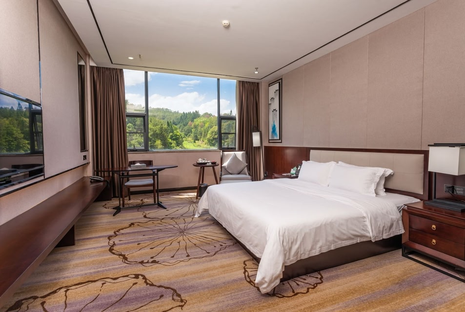 The hotel is a collection of accommodation, catering, entertainment as one of the comprehensive hotel. The hotel covers an area of about 6600 square meters, with a building area of 11,800 square meters. The hotel is decorated with luxury and elegance, rich Hakka culture and complete reception facilities, including standard rooms, deluxe rooms, suites and other room types. Supporting facilities: desk, power socket of various specifications, central air conditioning, electric blackout curtain, full coverage of high-speed WIFI, ultra clear network TV, domestic telephone, electric kettle, free bottled water of Nongfu Spring (two bottles). Bathroom: Slippers, bathroom magnifying glass, 24 hour hot water, free toiletries, separate shower, hair dryer. There is a Chinese banquet hall that can accommodate one thousand people, more than 30 luxury boxes, European classic western restaurant; There are senior entertainment and leisure clubs, parking lots and other supporting facilities. Its elegant interior space design, considerate butler service, fine dining and facilities, especially suitable for large and small meetings or dinners, to provide customers with unique and exquisite experience of excellence. The hotel is by the mountains and by the water. It is an ideal world for conferences and leisure vacations. We are looking forward to your visit.