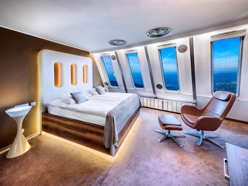 The building of a hotel in the Jested tower is an unique piece of architecture on the mountain 10 km far of city Liberec. A restaurant serving local and modern cuisine is available on site.