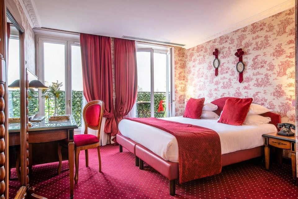 With a stay at Maison Eugenie in Paris (17th Arrondissement), you'll be a 4-minute drive from La Machine du Moulin Rouge and 5 minutes from Palais Garnier. This 4-star hotel is 1.5 mi (2.4 km) from Arc de Triomphe and 1.6 mi (2.7 km) from Champs-Élysées. Take in the views from a terrace and make use of amenities such as complimentary wireless Internet access and concierge services. Additional amenities at this hotel include a reception hall and a vending machine. Take advantage of the hotel's 24-hour room service. Wrap up your day with a drink at the bar/lounge. A complimentary continental breakfast is served daily from 7:30 AM to 10:30 AM. Featured amenities include a business center, complimentary newspapers in the lobby, and a 24-hour front desk. Stay in one of 41 guestrooms featuring Smart televisions. Complimentary wireless Internet access is available to keep you connected. Private bathrooms with shower/tub combinations feature complimentary toiletries and hair dryers. Conveniences include phones, as well as safes and desks.
