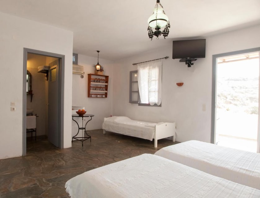 Overlooking the charming bay of Platys Yialos, Ostria offers self-catering studios set within a colourful flower garden. The Blue Flag beach of Platys Yialos is 350 metres away. License number: 1076597