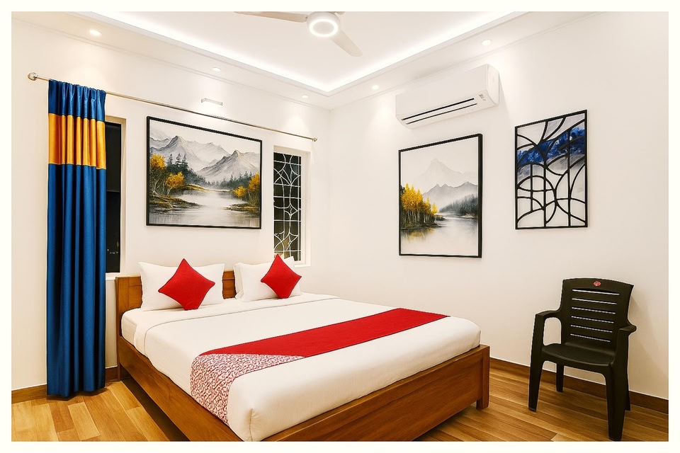Experience an abundance of unparalleled facilities and features at Goroomgo Caroline Homestay Bhubaneswar.Maintain seamless communication using the complimentary Wi-Fi at homestay.Effortlessly arrange transportation to and from the airport using the homestay's airport transfer services. Discovering Bhubaneswar becomes even more accessible through the taxi, car hire and shuttle amenities provided at the homestay. Guests can avail parking facilities at the homestay. During your stay at this fantastic homestay, the attentive front desk personnel can provide you with a range of amenities such as concierge service, express check-in or check-out, luggage storage and safety deposit boxes. In search of city's top entertainment, seek assistance at the homestay's ticket service and tours for reservations.During chilly days and evenings, the homestay provides an in-house fireplace to ensure your warmth. At the homestay, utilize the on-site laundromat, dry cleaning service and laundry service to maintain your beloved travel attire fresh, allowing you to bring fewer clothes.Craving relaxation? Make the most of your stay at the Goroomgo Caroline Homestay Bhubaneswar with convenient amenities like 24-hour room service, room service and daily housekeeping at your disposal.For all your minor, last-minute requirements, the convenience stores can promptly cater to them, eliminating the need to venture out. Kindly note that smoking is prohibited in the homestay to ensure fresher air for all visitors.For visitors wishing to smoke, designated smoking zones can be found.At Goroomgo Caroline Homestay Bhubaneswar, every guestroom is provided with convenient amenities and fittings to ensure a comfortable stay. Enhance your experience at homestay with the knowledge that certain rooms are equipped with linen service and air conditioning for your convenience. A few accommodations within Goroomgo Caroline Homestay Bhubaneswar offer unique design elements such as a balcony or terrace.Certain rooms boast in-room amusement features such as daily newspaper, television and cable TV, offering guests an enjoyable stay.In select rooms within the homestay, a refrigerator and a coffee or tea maker is available to cater to your requirements when desired. Essential restroom facilities are equally significant, and at the homestay, some visitor bathrooms offer toiletries to enhance your experience. Begin your day with a scrumptious on-site breakfast available each morning at Goroomgo Caroline Homestay Bhubaneswar.At the homestay, an assortment of easily accessible and delicious meal choices are available to satisfy your appetite whenever it strikes. At Goroomgo Caroline Homestay Bhubaneswar, visitors have the option to receive groceries directly in their accommodation, ensuring outstanding comfort and simplicity when it comes to meals. At the homestay, discerning guests can also enjoy on-site culinary facilities like BBQ facilities tailored to their preferences.