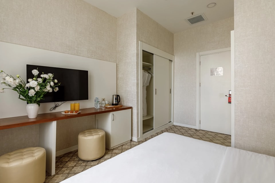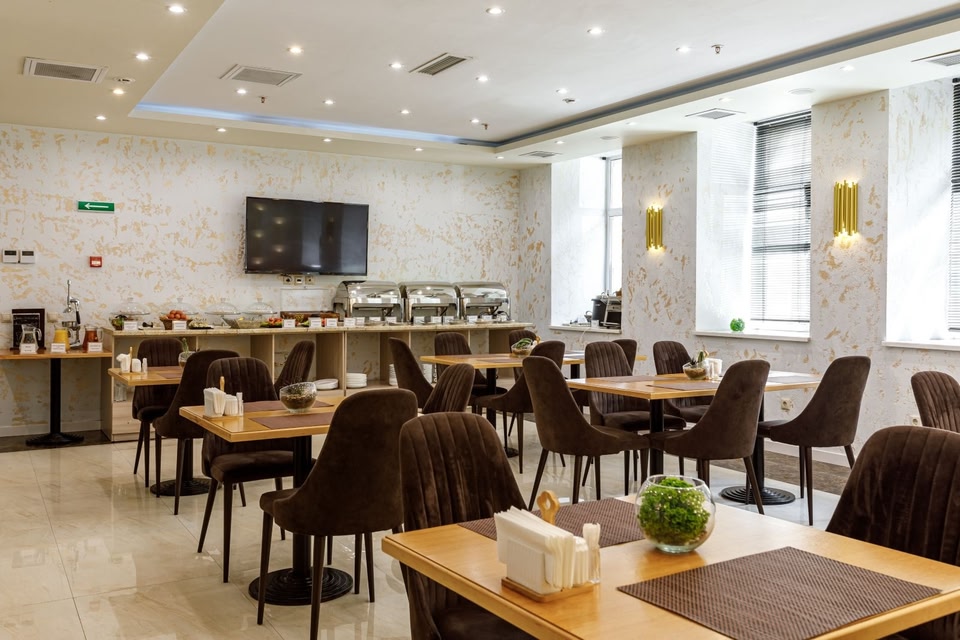 Location Good choice if you’re looking forward to taking some rest at the hotel as much as to walking around the city. Hotel «Arium Hotel by Brosko» is located in Moscow. This hotel is located in walking distance from the city center. You can take a walk and explore the neighbourhood area of the hotel — Hermitage Garden, Mayakovskaya and Triumfalnaya Square.At the hotel You can stop by the bar. Taste the local cuisine and have a rest in the restaurant. Want to be always on-line? Wi-Fi is available. If you travel by car, there’s a parking zone. Sports fans will be able to enjoy a gym. For participants of business meetings, there is a conference hall. Accessible for guests with disabilities: the elevator helps them to go to the highest floors. Additional services that the hotel offers to its guests: a laundry and ironing. The staff of the hotel will be happy to talk to you in English and Russian.Room amenities In the room, there is a TV. The room equipment depends on its category.