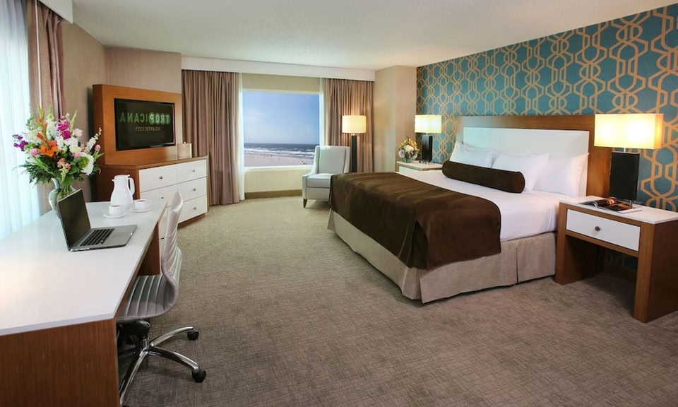 Located alongside the shops and entertainment venues on the downtown Atlantic City boardwalk, this beachfront resort and casino offers a full-service spa, a salon, a nightclub and 30 restaurants. Indoor and outdoor swimming pools are also located on site. Rooms are offered in 5 towers. Guests can enjoy the casino or have a drink at the outdoor pool-side bar. Seasonal beach service and a fitness center are also available at the resort. The Tropicana Resort has an IMAX movie theater and live entertainment on weekends. Atlantic City Convention Center is 5 minutes' drive from the resort.
