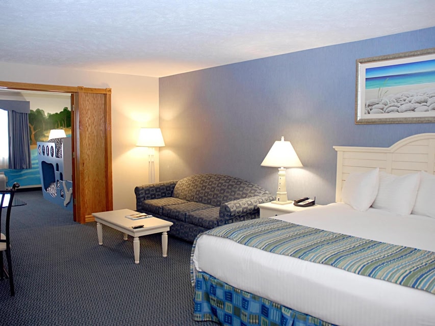 Grand Beach Resort features a private beach, heated indoor pool, and a complimentary breakfast. Guest rooms offer beach or courtyard views. WiFi, cable TV with HBO, refrigerators and coffee makers are provided.
