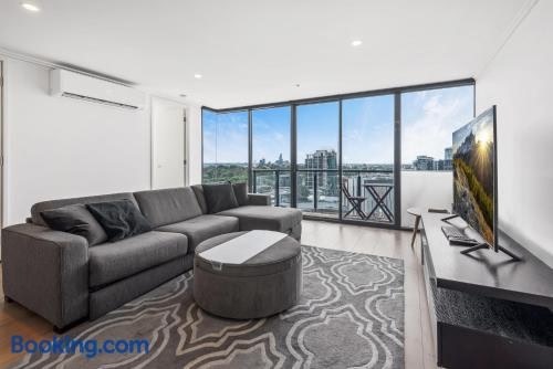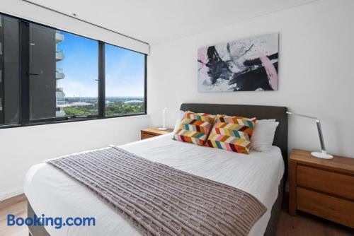 يتمتع مكان إقامة "Executive Melbourne Getaway with City Views" بموقع ملائم في مركز ملبورن ويوفر مركزاً للياقة البدنية. توفر هذه الشقة فناء وواي فاي مجاني.