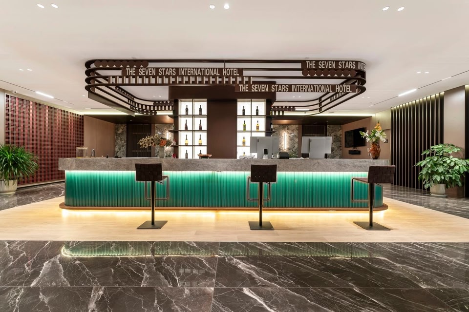 The Seven Stars International Hotel is located in Erlianhot, Inner Mongolia, an international port city. It creates a complex space integrating a 24-hour bar, brand coffee shop, Chinese and Western-style breakfast, fitness center, cross-border specialty hall, and self-service laundry. The hotel not only provides a comfortable residence for business travelers, but also meets the needs of port trade social and quality leisure with the positioning of "urban third space".