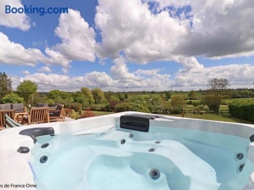 يقع مكان إقامة "Séjour familial avec spa et jardin, proche Haras du Pin - FR-1-497-221" في Saint-Germain-de-Clairefeuille على بُعد 40 كم من Halle au Blé، ويوفر واي فاي مجاني وتراس وحديقة. يقدم مكان الإقامة إطلالات على الحديقة ويبعد مسافة 3.