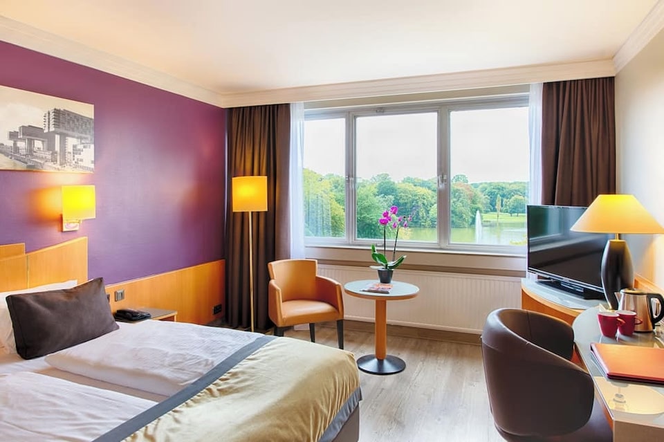 This hotel stands beside a lake in Cologne’s city forest. It offers quiet rooms, a lakeside beer garden and direct train/bus connections to Cologne's historic centre.
