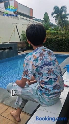 يقع مكان إقامة "Villa Bening Geulis - Private Pool - Meja Billiard" في Cikundul، ويوفر مسبحاً خاصاً وشرفة وإطلالة على المسبح.