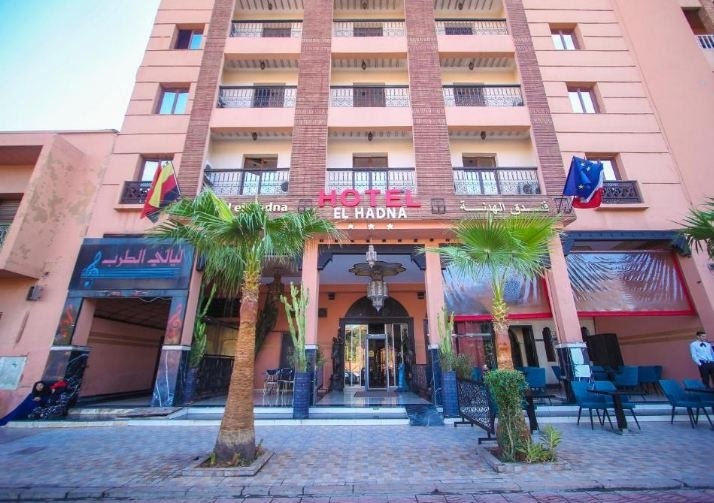 يقع فندق El Hadna في مركز مدينة مراكش على بعد 15 دقيقة مشياً على الأقدام من ساحة سوق جامع الفناء، ويقدم غرفاً مع تكييف للهواء وبركة سباحة داخلية وحماماً تقليدياً وساونا.