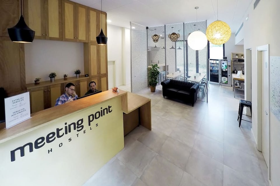 يقع نُزُل ميتينغ بوينت خلف محطة قطار برشلونة سانتس مباشرةً، ويوفر خدمة واي فاي مجانية. كما يوفر غرفًا خاصة ومشتركة.