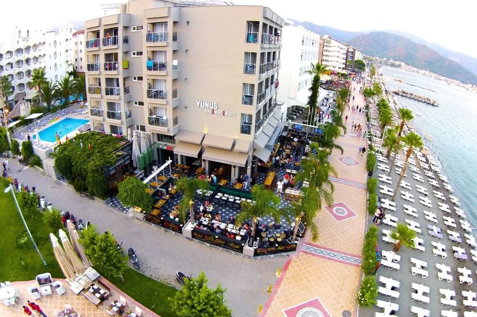 Located on a private beach, Yunus Hotel is in Marmaris City Center, a neighborhood in Marmaris. The area's natural beauty can be seen at Marmaris Beach and Icmeler Beach. Looking to enjoy an event or a game while in town? See what's happening at Marmaris Amphitheater or Marmaris Go Karting Park. Discover the area's water adventures with scuba diving nearby, or enjoy the great outdoors with hiking/biking trails. Beachfront, with outdoor poolWhen you stay at this beach hotel you can enjoy umbrellas and sun loungers. Yunus Hotel offers 50 air-conditioned accommodations with minibars and safes. Rooms open to balconies. Beds feature premium bedding. LCD televisions come with premium satellite channels and pay movies. Bathrooms include showers, slippers, bidets, and complimentary toiletries. This Marmaris hotel provides complimentary wireless Internet access. Additionally, rooms include complimentary bottled water and coffee/tea makers. Housekeeping is provided daily. An outdoor pool and a children's pool are on site. Other recreational amenities include a private beach. The recreational activities listed below are available either on site or nearby; fees may apply. License number: 1896